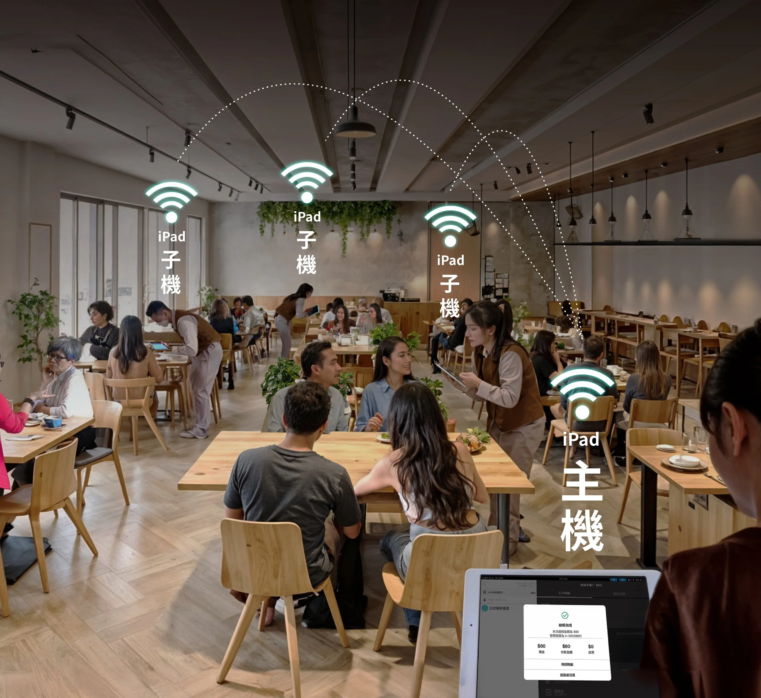 店員在各角落就近就能拿到 iPad 點餐與結帳。